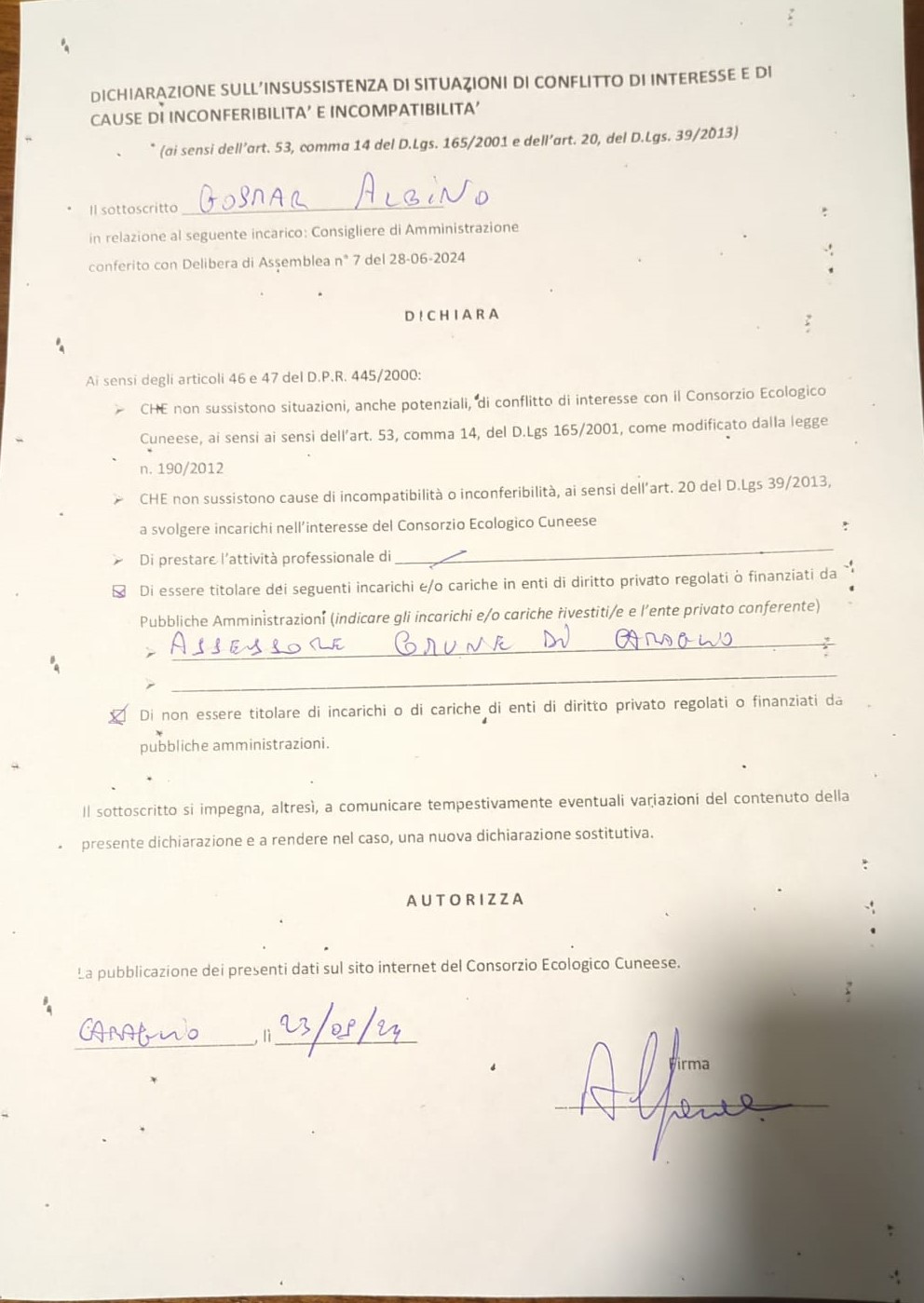 Nominativo: Sig. ALBINO GOSMAR